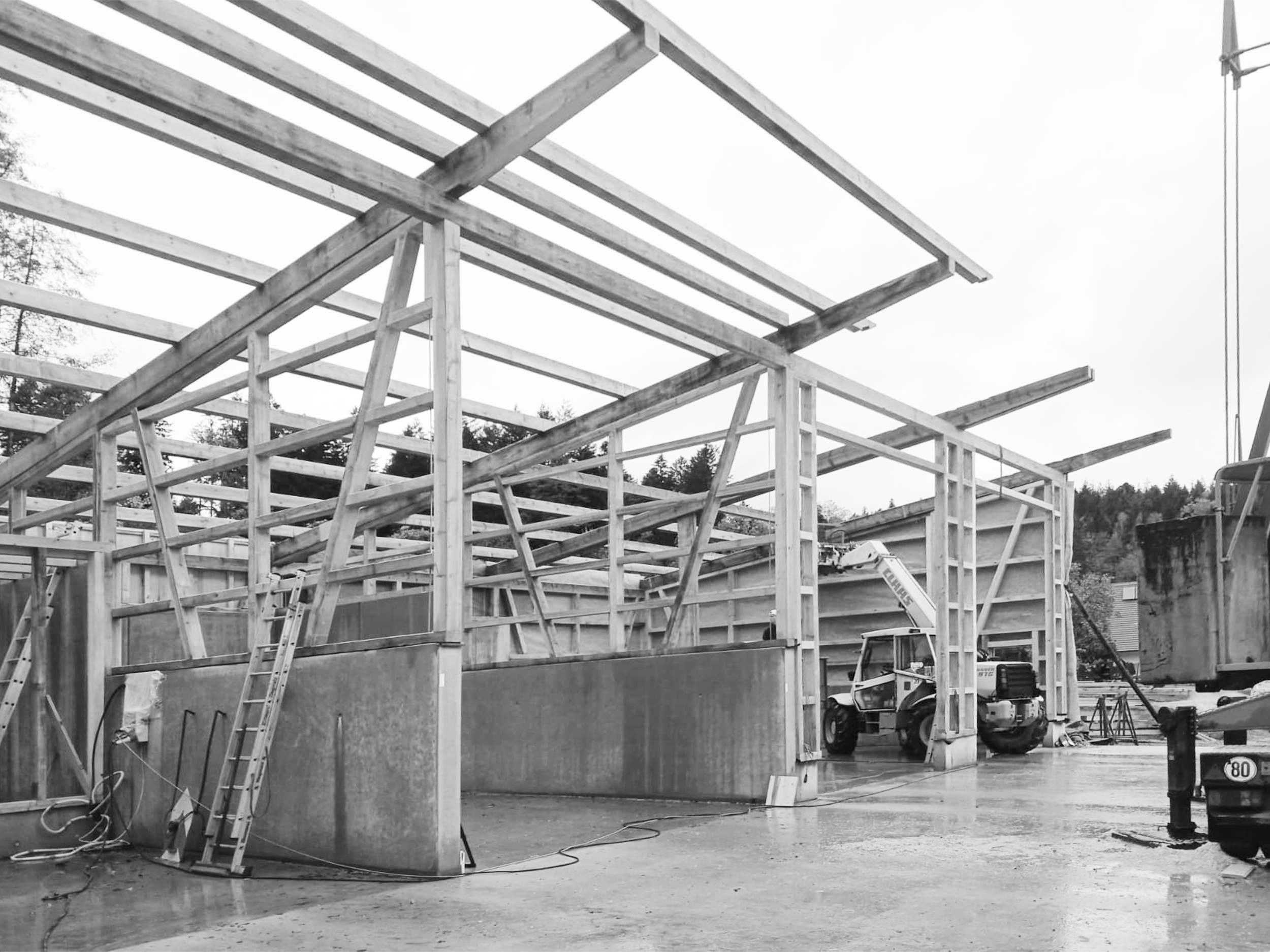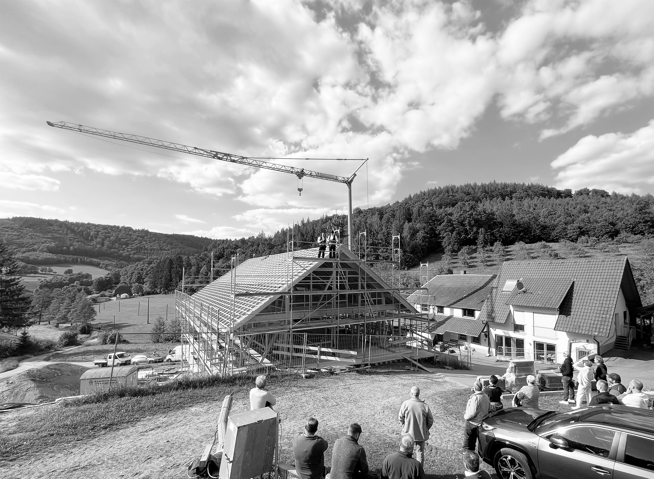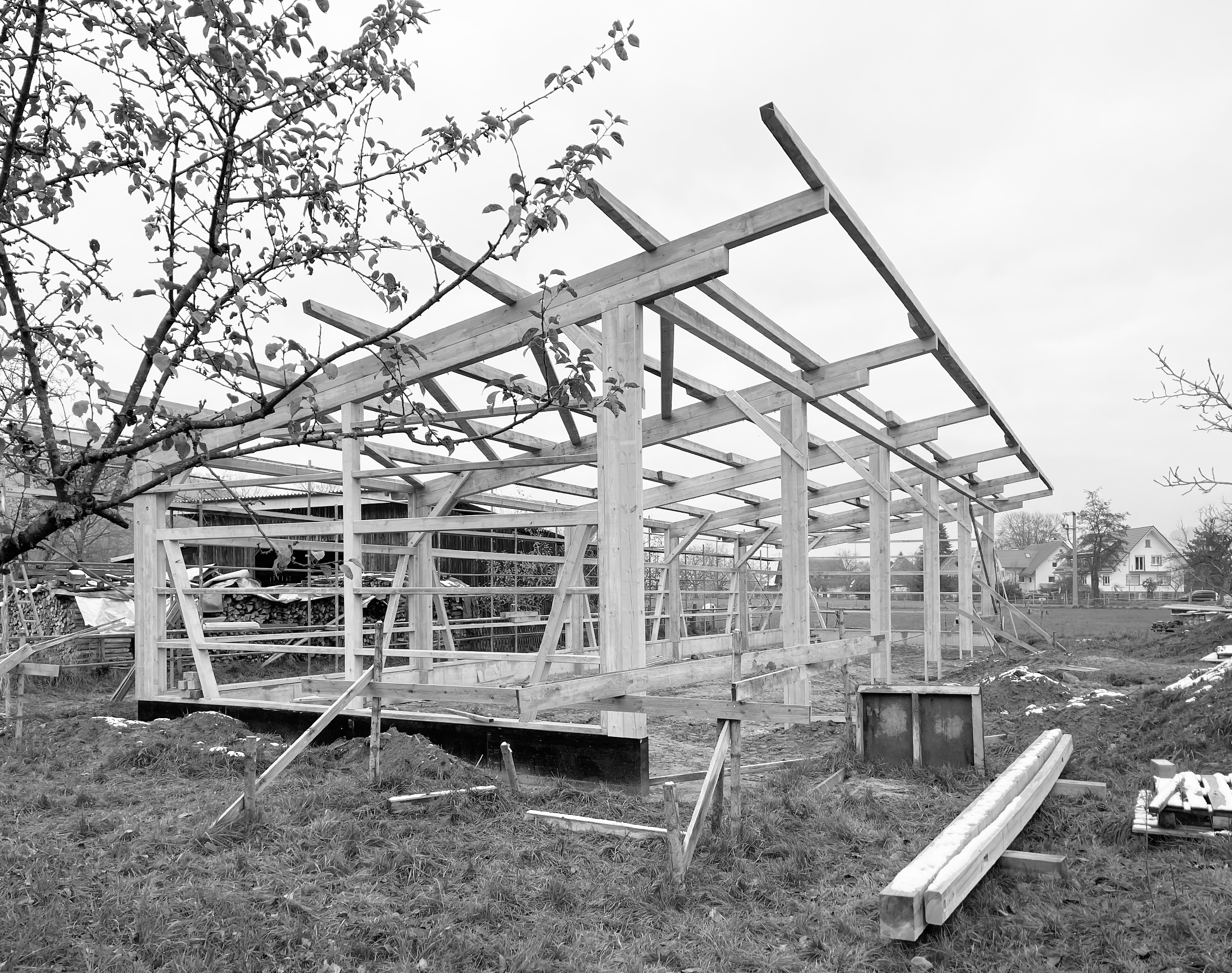 AUFRICHTEN EINES SCHOPFES MIT HACKSCHNITZELLAGER UND HEIZRAUM | OPPENAU